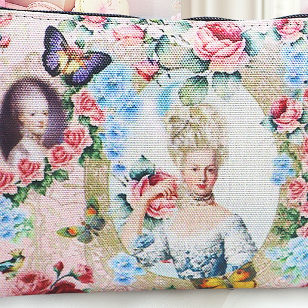 この平型ポーチは、まるでマリーアントワネットの宮廷にタイムスリップしたかのような優雅さを漂わせています。